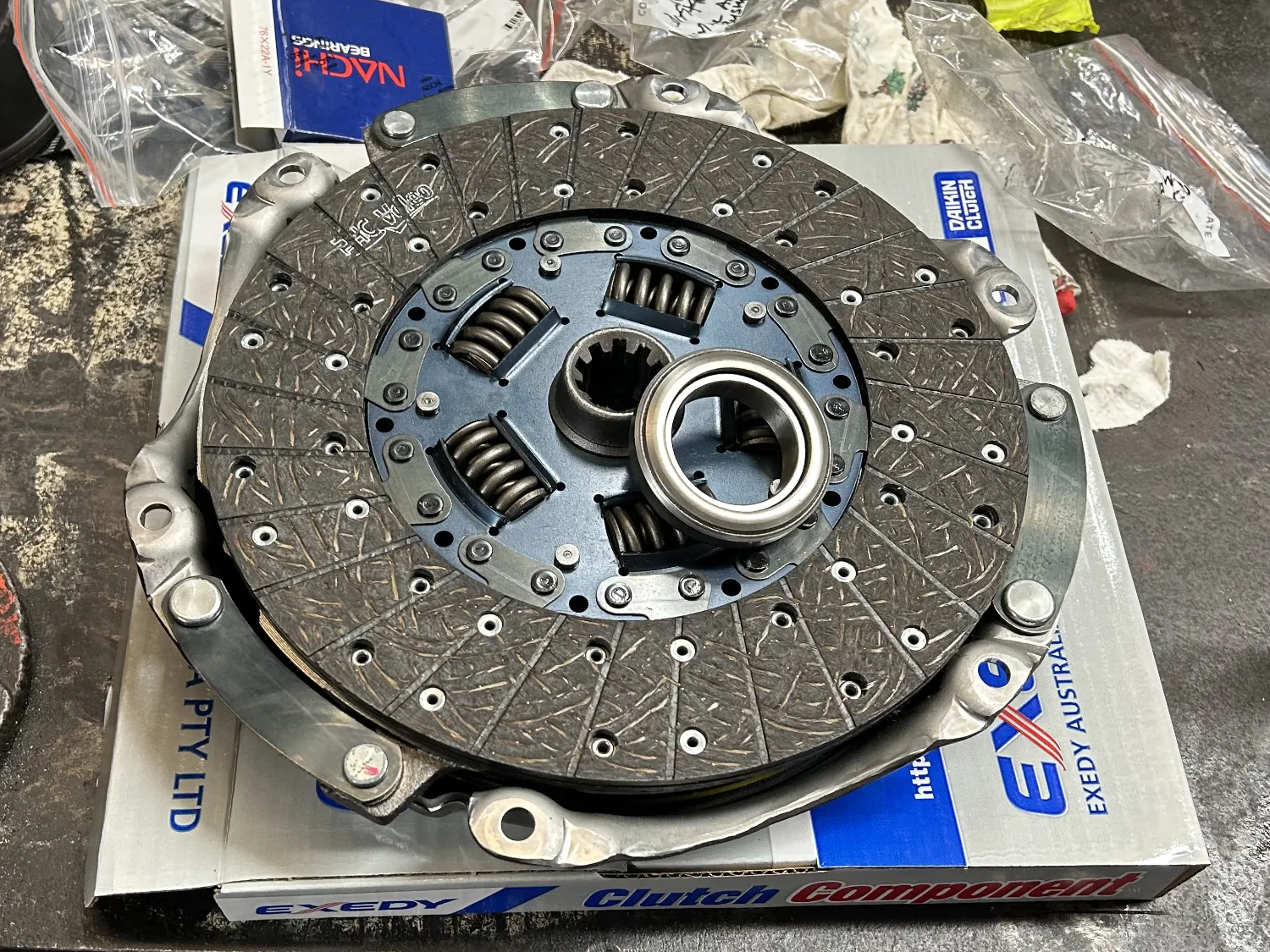 - Fitted Exidy clutch kit (clutch, pressure plate, throw-out bearing)