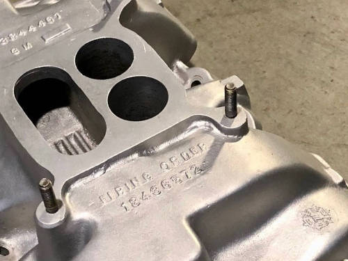 I replaced all the bolts with factory bolts new old stock on the intake and used Fel Pro gasket for the intake. I remember when I removed the distributor the tag was still on the neck of the distributor with the correct part number. That dist. is original to the car. I also installed a new set of points and condenser. If you look under the distributor shielding you should see a plastic piece that was original to the car.