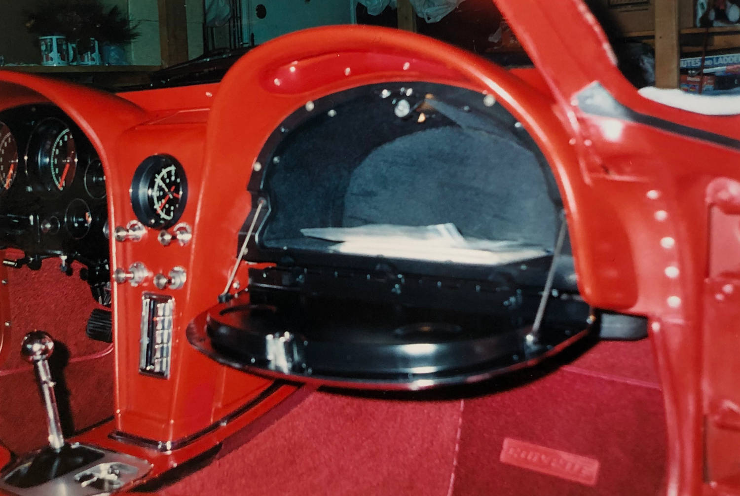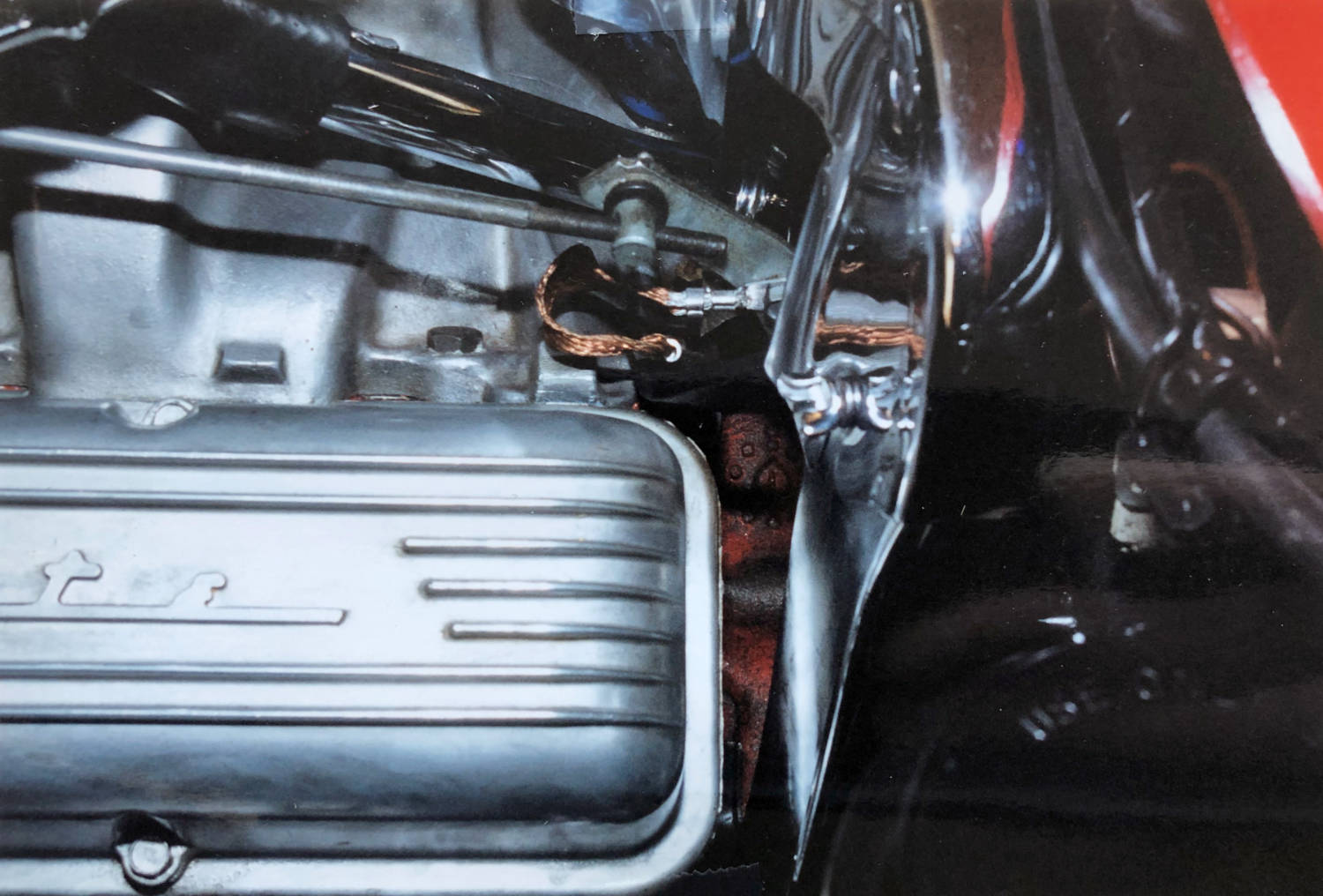 These photos document what was probably the most recent restoration work undertaken on the Corvette. Galen didn't touch the paint (other than to touch-up the door jambs), and the body stayed on the car, however he did repaint and replace a lot of parts. Some of his work is still looking good today (the underside of the bonnet for example).