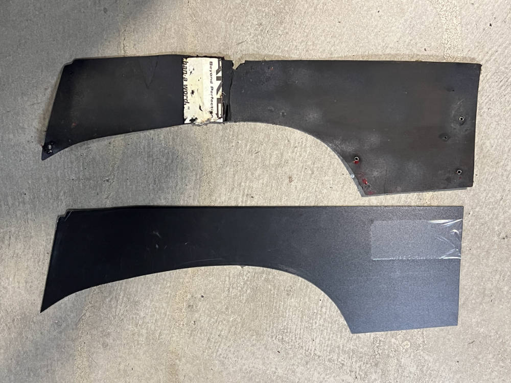 The cardboard backing on the carpeted panel was in very poor condition, a previous repair had failed and the backing was now broken in the middle. I made a new backing board using 3mm PVC foam board, reusing the original metal eyelets to reinforce the mounting holes. I carefully glued the carpet to the new board using 3M High Tack spray adhesive. The original wire mesh screen at the rear of the blower motor cover was missing, so I made a new one using zinc-coated wire mesh.