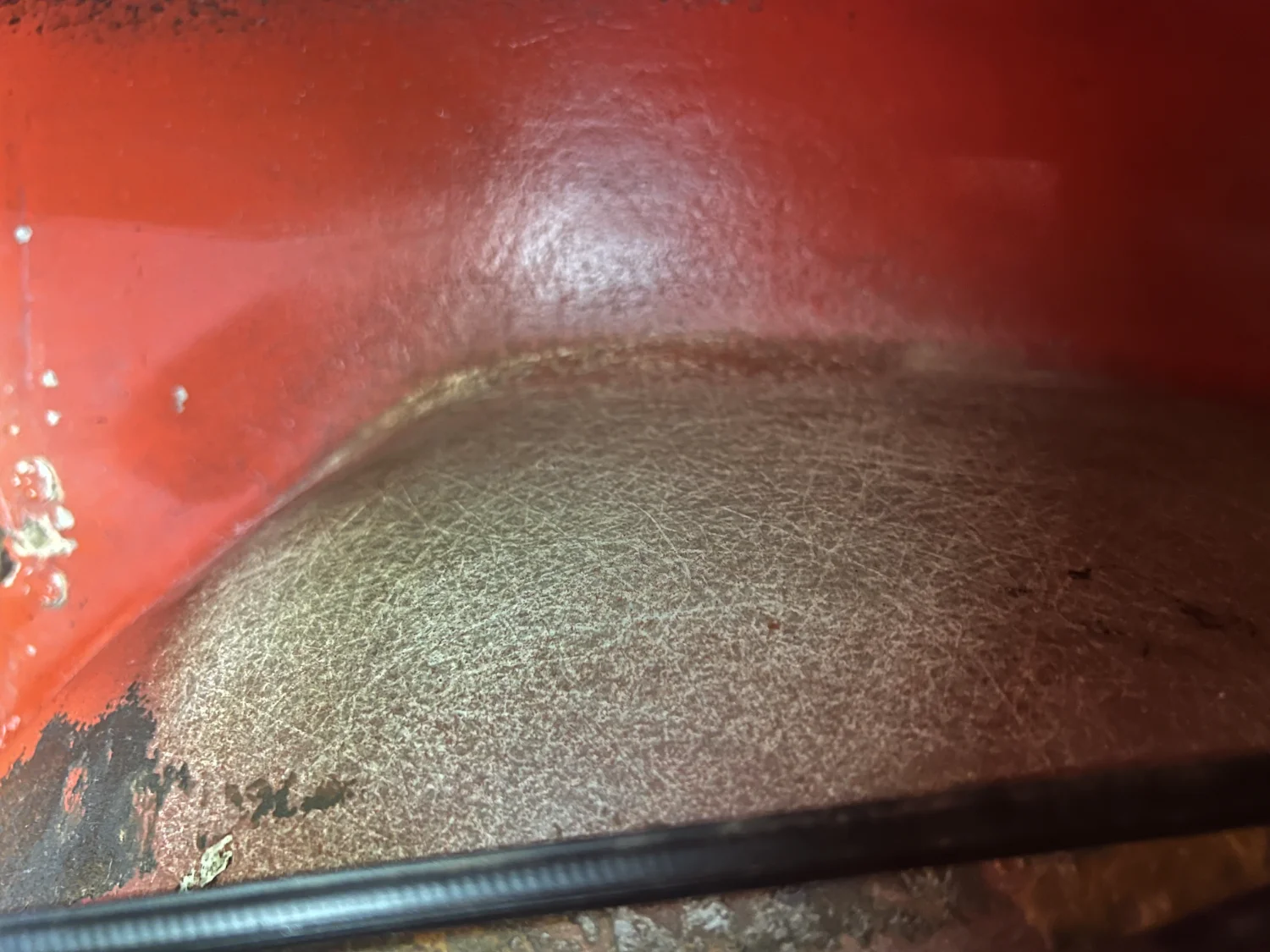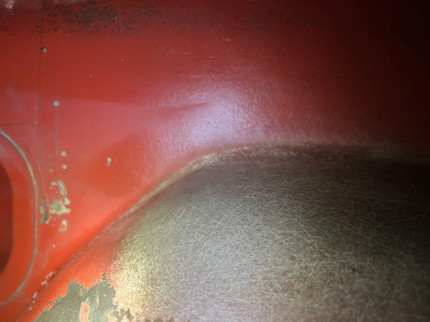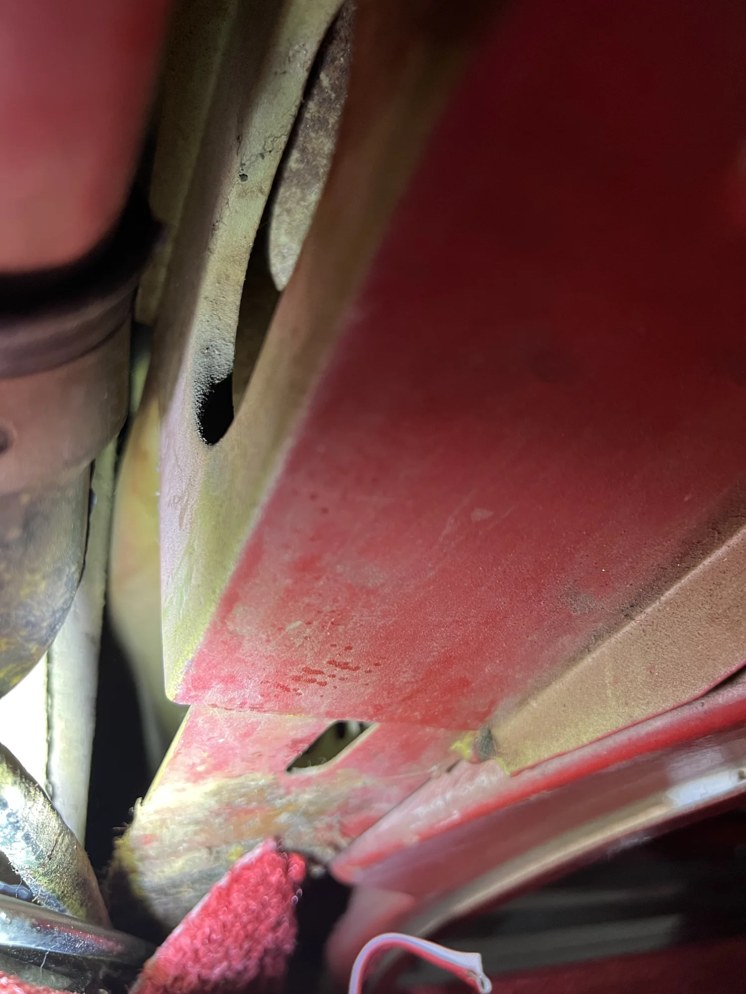 The whole bird cage on C2 Corvettes was painted in green zinc chromate primer. St Louis bodied cars then had the area under the glove box (where the trim and vin tag are located) blacked out, whereas A.O. Smith bodied cars (of which the Red Rocket is one) had body colour overspray in that area. St Louis cars had under-body reinforcement steel parts painted black while A.O Smith cars were in green zinc chromate. Green zinc chromate primer can also be found on the door inspection panels (behind the door trims) and the core support area behind the headlights.