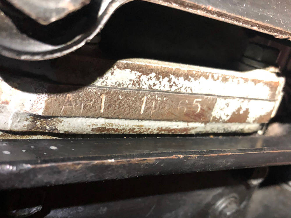 The diff ratio used in the Red Rocket has been a bit of a mystery until now. The original Owner's Manual (which came with the car) has two hand-written notes which indicate a 3.7:1 ratio was fitted to the car, however the code 'AP' stamped on the diff housing indicates a 4.11:1 (refer to Corvette Rear Axle Codes & Ratios link below). The diff housing date code is 1-14-65 (14 January 1965), which suggests that the housing is original to the car.